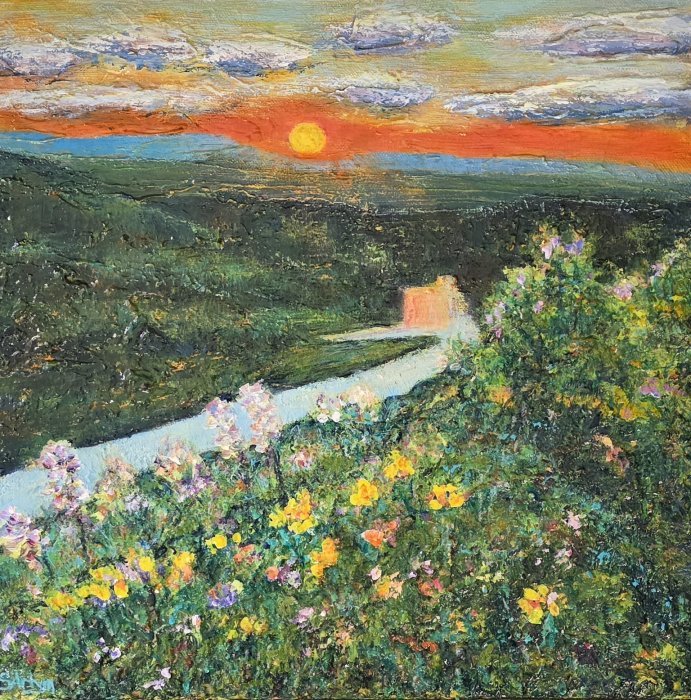 Suzanne Artym is an Alberta visual artist who draws inspiration from her natural environment, extending from her backyard, to the prairies and to the Rocky Mountains. Familiar subjects such as flower gardens, wildflowers, birds and landscapes find new life on her canvas. Suzanne’s art education is self-directed through the process of discovery and learning from workshops, fellow artists and tutorials. The interplay of colour, texture, and shape have a stunning impact on her acrylic and mixed media work.