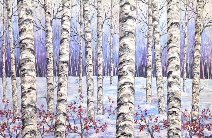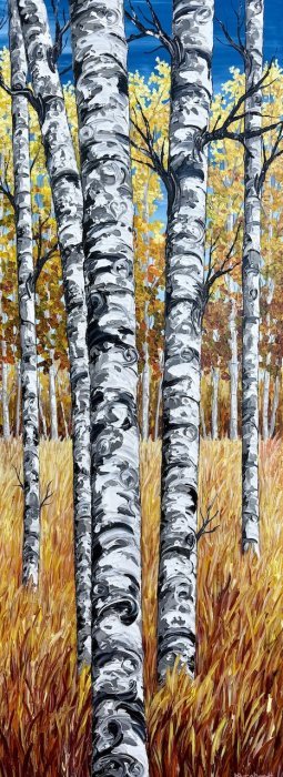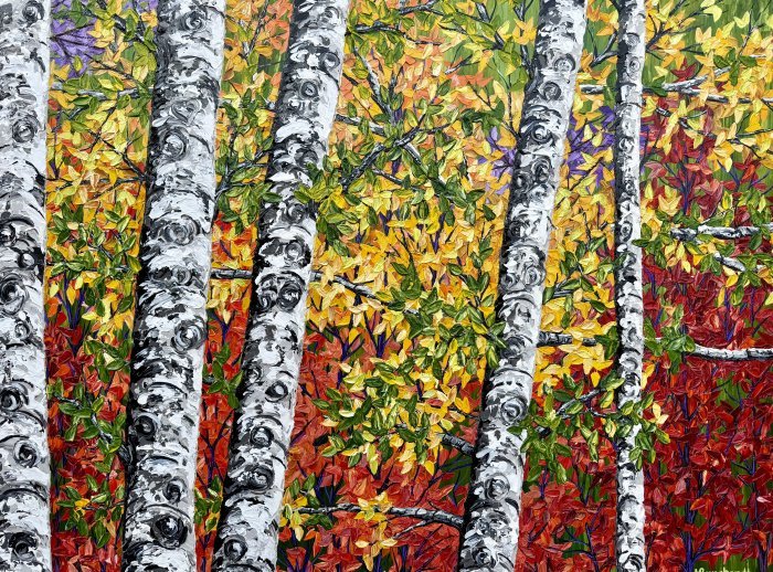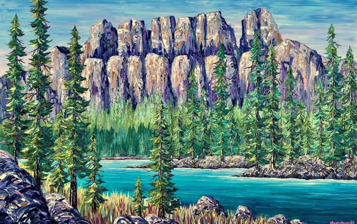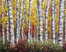 Holly is an artist from Calgary, AB who likes to use a variety of palette knives and thick, heavy body acrylic paint to create landscapes that are full of texture, depth, dimension, colour and life. She gravitated towards palette knives and thick paint because she loves how it goes onto the canvas, layer upon layer until the painting is complete. The final result is a piece that one wants to reach out and touch because of all the juicy layers and knife strokes.