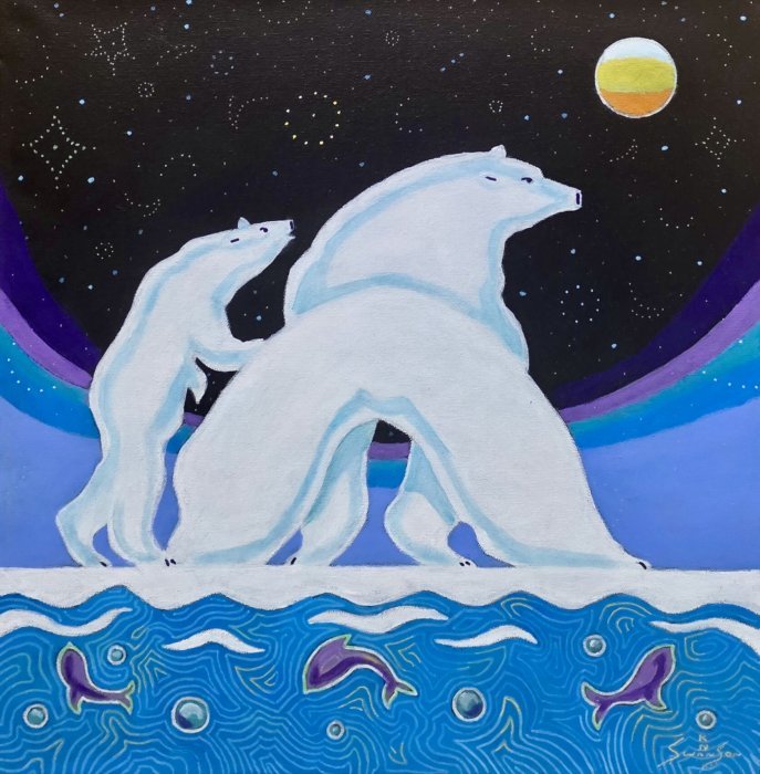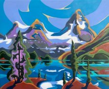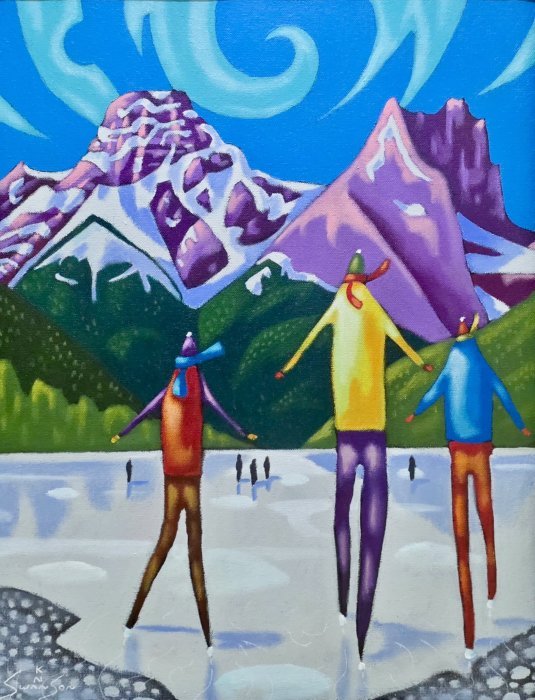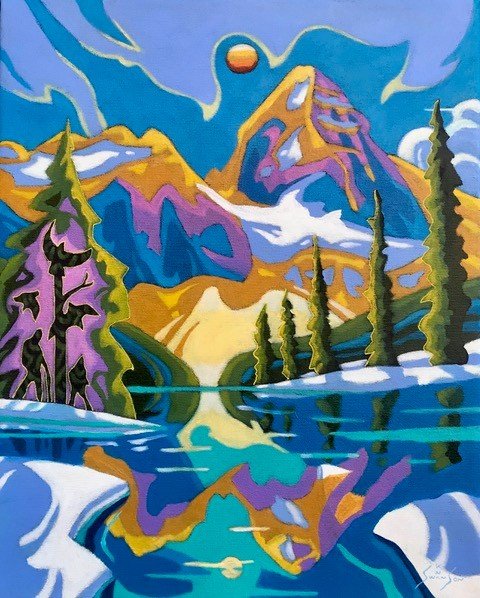 An artist with a quirky brush, and an eye for the surreal, K. Neil Swanson seeks the sublime within the obvious. Neil’s embrace of colour celebrates the grace and sanctity of the landscapes, and the life forces within. Dark shadows fall beside the brilliance of a mountainside in winter, predator and prey change place and shape. Night and day often co-exist in the same painting, the space between them almost imperceptible. Constantly evolving, Neil expresses himself by exploring our relationship with nature, and in essence, ourselves.